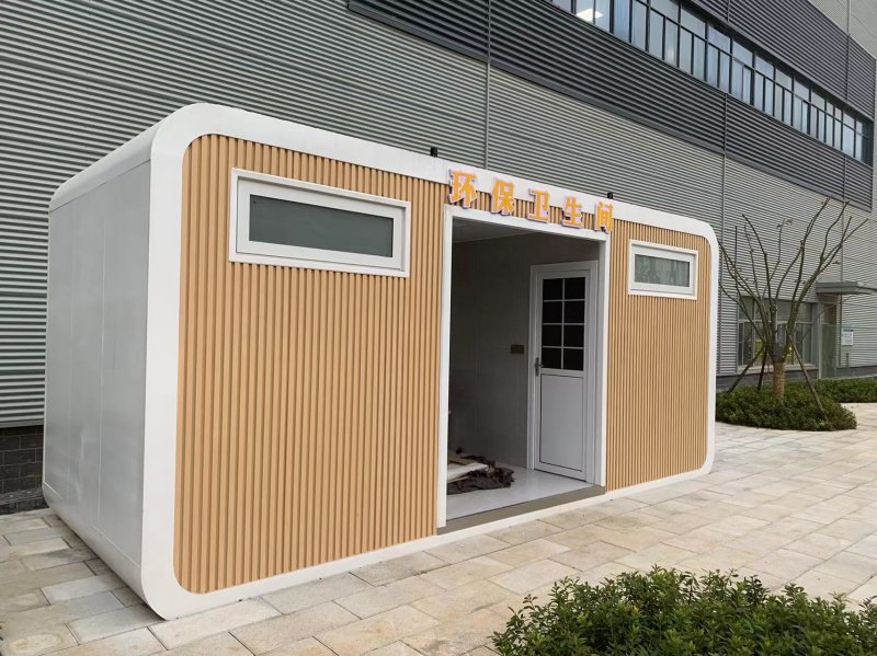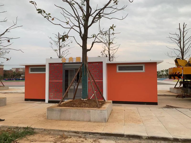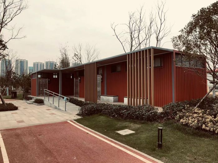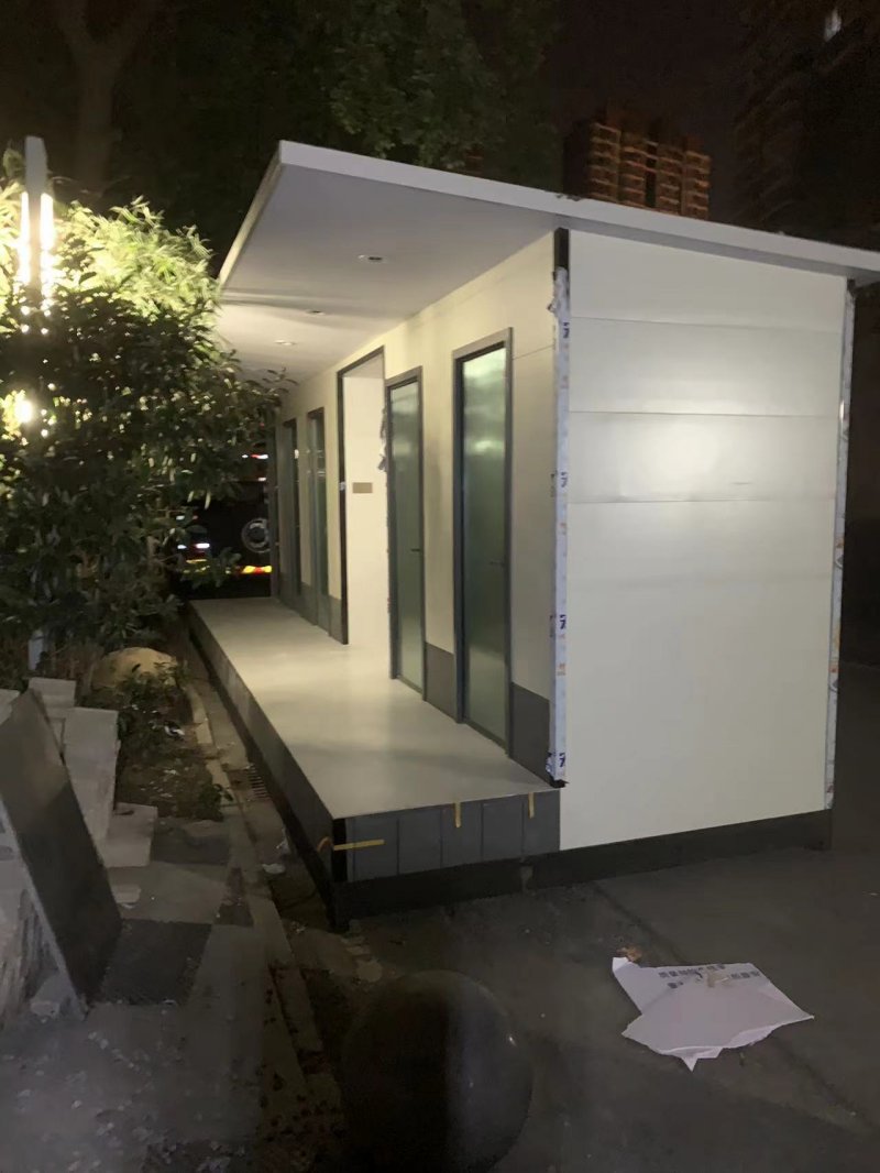 MORE拼裝廁所;在廠里做好各個(gè)廁所部件,再到現(xiàn)場組裝在一齊,適合不易運(yùn)輸?shù)拇笮蛶?。這座箱式廁所,女廁5個(gè)蹲位內(nèi)配工具間,男廁2個(gè)蹲位+2小便斗,第三衛(wèi)生間由殘疾馬桶、助力洗手盆和兒童馬桶、兒童洗手盆外加?jì)雰号_等設(shè)施。廁所前后有窗,通風(fēng)采光,前部走廊裝有屋檐,防雨防曬。此廁所位于公路綠道邊,整體大氣,功能齊全,造型美觀,是一道難得的靚麗景觀!