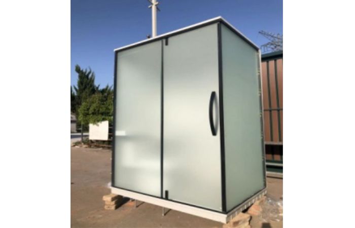 MORE單體廁所,適用于對廁所用地較小,配套設(shè)施不很齊全的環(huán)境臨時(shí)使用或過度使用方式。單人使用,設(shè)施配備蹲便器,洗手盆,排風(fēng)扇,照明等。